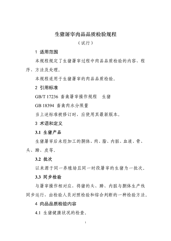 農(nóng)業(yè)農(nóng)村部公布《生豬屠宰肉品品質(zhì)檢驗規(guī)程(試行)》