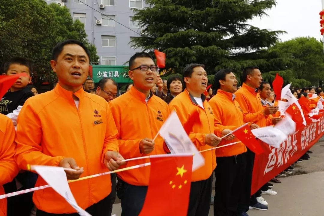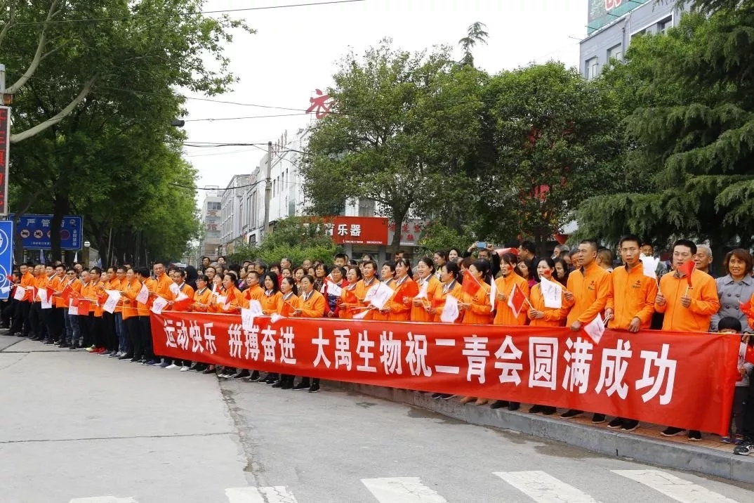 大禹生物職工代表手搖五星紅旗和“二青會”會徽“山河”旗幟,為圣火傳遞加油助威。
