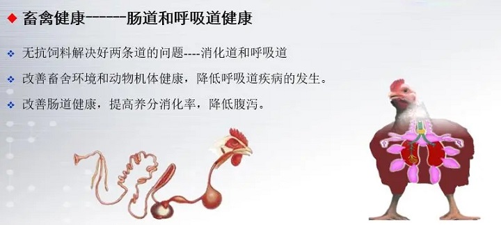 畜禽健康,關(guān)鍵點(diǎn)在于維持腸道和呼吸道健康。健康的呼吸道能夠完成正常的獲取O2和CO2的生理過程,通過維持良好的畜舍環(huán)境、降低有害氣體濃度(氨氣、硫化氫和二氧化碳)和粉塵顆粒物的數(shù)量、維持動(dòng)物機(jī)體健康、增加抵抗力和黏膜修復(fù)能力來保持呼吸道健康。腸道通過腸道內(nèi)維持健康自然的微生物群體、釋放抗體、阻止病原菌穿過物理環(huán)境、食物在消化系統(tǒng)內(nèi)的移動(dòng)和產(chǎn)生黏膜蛋白屏障免于受病原菌的侵害,腸道健康的核心問題是腸道形態(tài)結(jié)構(gòu),不同腸段的長度、容積以及絨毛、刷狀緣的生理狀態(tài)和黏蛋白層的完整性。