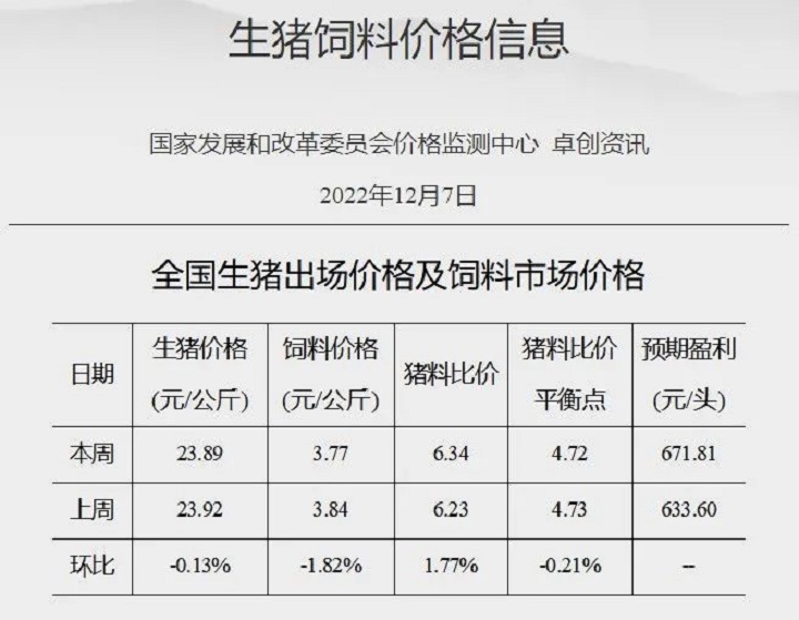 國(guó)家發(fā)改委:豬糧比價(jià)進(jìn)入過(guò)度下跌二級(jí)預(yù)警區(qū)間
