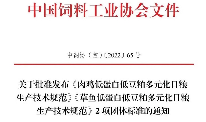 飼料工業(yè)協(xié)會(huì)批準(zhǔn)發(fā)布《肉雞、草魚(yú)低蛋白低豆粕多元化日糧生產(chǎn)技術(shù)規(guī)范》兩項(xiàng)團(tuán)體標(biāo)準(zhǔn)